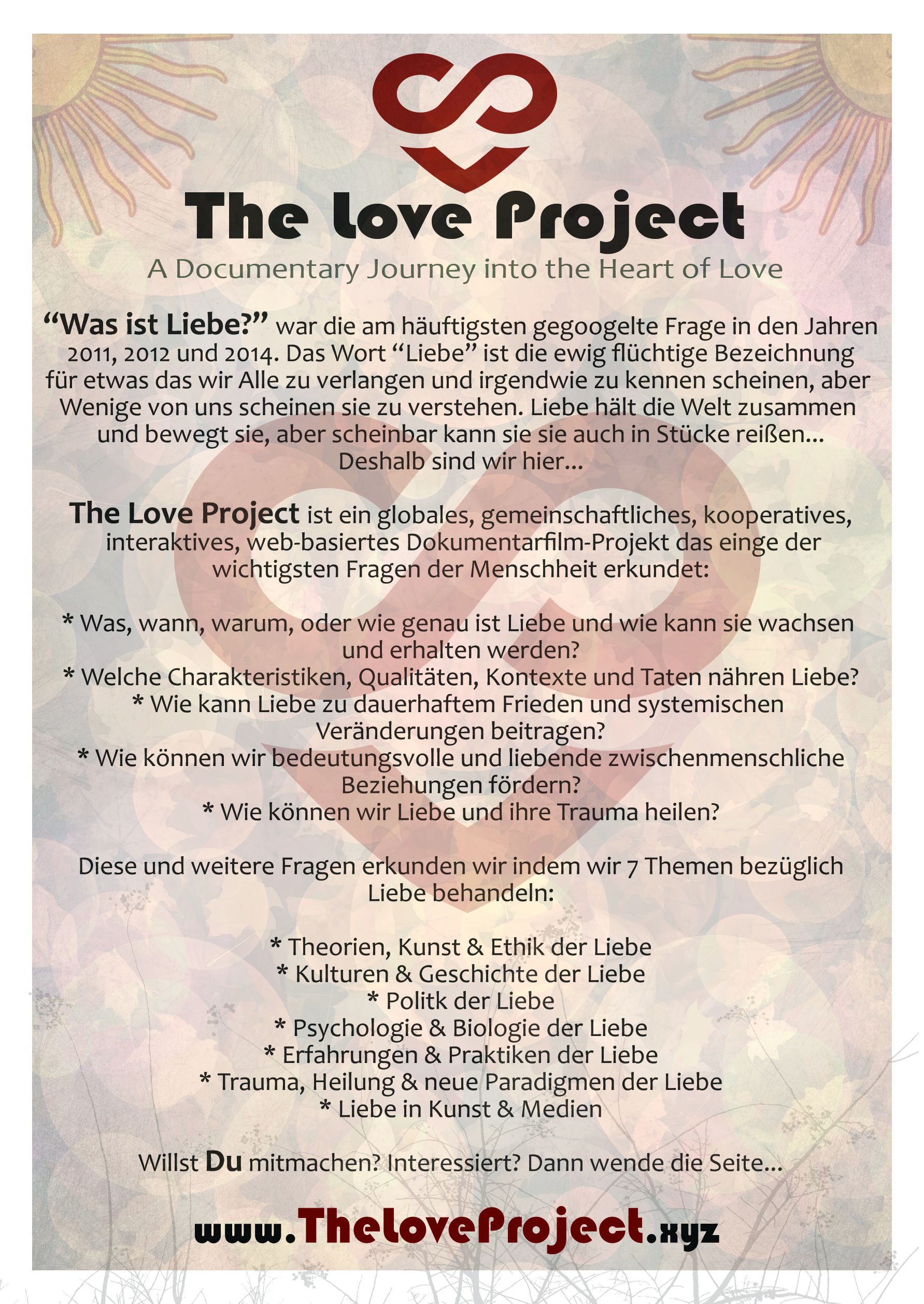 Here you can find our flyers for download and sharing via social media and/or printing and handing out at festivals, gatherings, meetings, to friends, etc. They are a very good way to get in contact with people and start chatting about something very important and interesting: love..